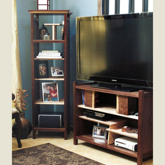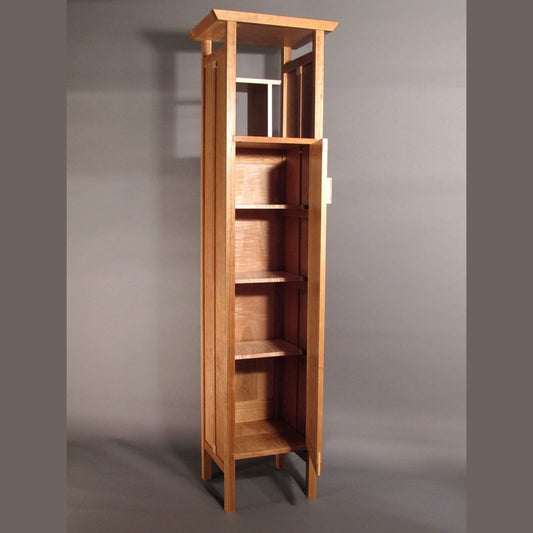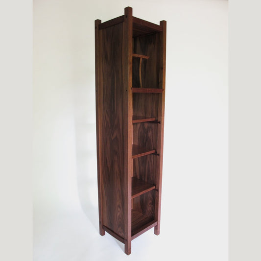 The Tall Case – modern open-back bookcase/ narrow storage tower with display shelves