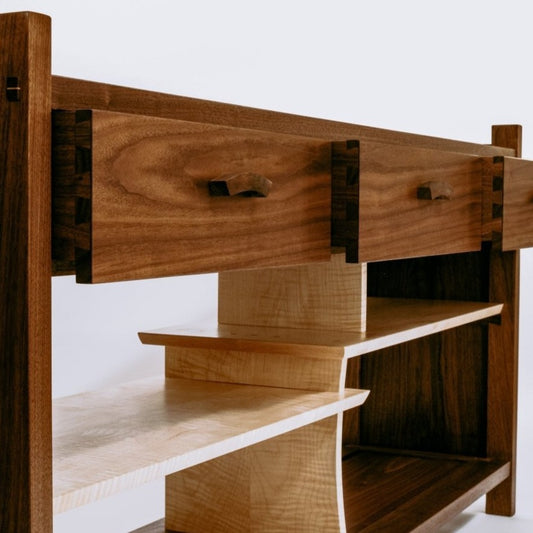 The Enzo Cabinet with Drawers – Walnut with Tiger Maple