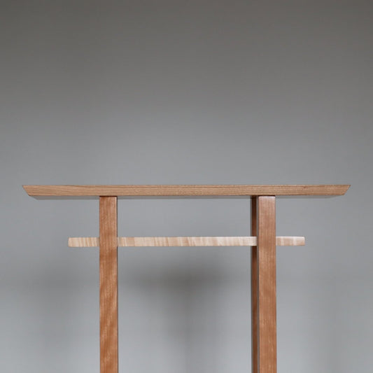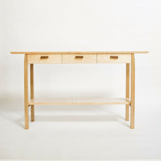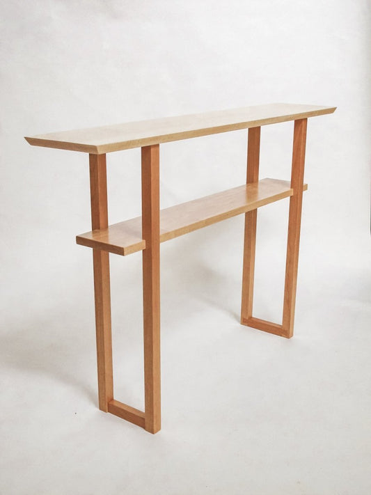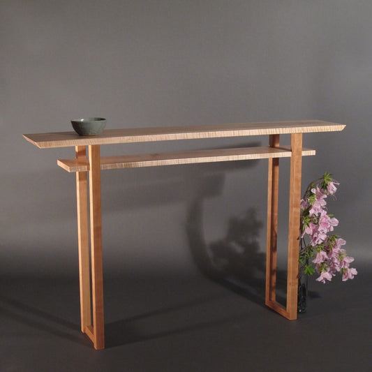 Entry Console Table with Narrow Drawers – Tiger Maple with Walnut